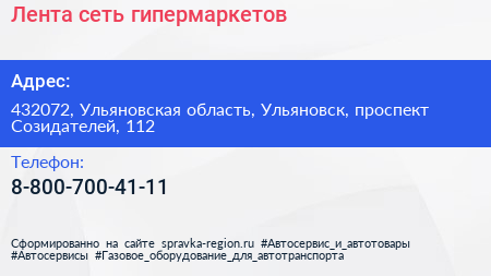 Лента, сеть гипермаркетов по адресу 432072, Ульяновская область, Ульяновск, проспект Созидателей, 112 в дальнейшем Организация, размещена в следующих категориях: