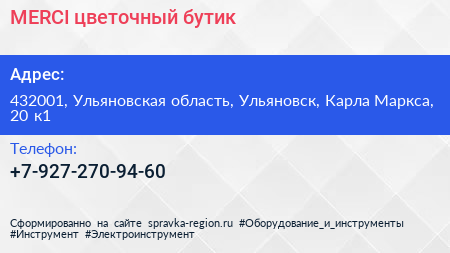 MERCI, цветочный бутик по адресу 432001, Ульяновская область, Ульяновск, Карла Маркса, 20 к1 в дальнейшем Организация, размещена в следующих категориях: