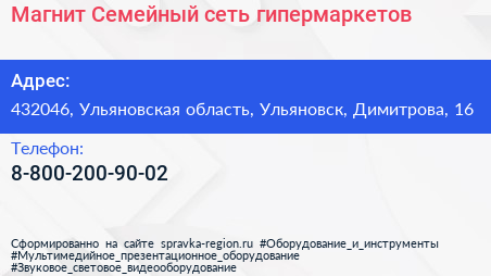 Магнит Семейный, сеть гипермаркетов по адресу 432046, Ульяновская область, Ульяновск, Димитрова, 16 в дальнейшем Организация, размещена в следующих категориях: