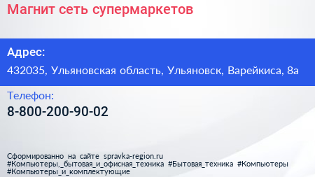 Магнит, сеть супермаркетов по адресу 432035, Ульяновская область, Ульяновск, Варейкиса, 8а в дальнейшем Организация, размещена в следующих категориях: