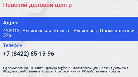 Невский, деловой центр по адресу 432013, Ульяновская область, Ульяновск, Промышленная, 59а в дальнейшем Организация, размещена в следующих категориях:
