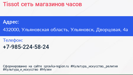 Tissot, сеть магазинов часов по адресу 432000, Ульяновская область, Ульяновск, Дворцовая, 4а в дальнейшем Организация, размещена в следующих категориях: