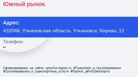 Южный, рынок по адресу 432048, Ульяновская область, Ульяновск, Кирова, 12 в дальнейшем Организация, размещена в следующих категориях: