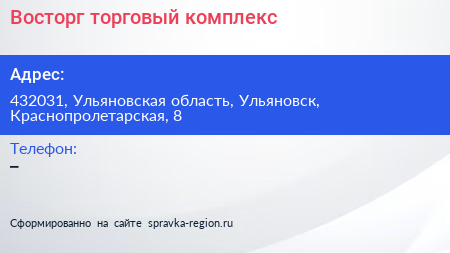 Восторг, торговый комплекс по адресу 432031, Ульяновская область, Ульяновск, Краснопролетарская, 8 в дальнейшем Организация, размещена в следующих категориях: