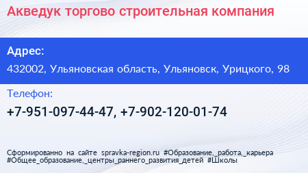 Акведук, торгово-строительная компания по адресу 432002, Ульяновская область, Ульяновск, Урицкого, 98 в дальнейшем Организация, размещена в следующих категориях: