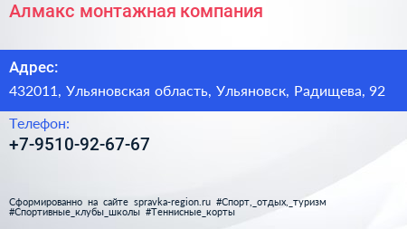 Алмакс, монтажная компания по адресу 432011, Ульяновская область, Ульяновск, Радищева, 92 в дальнейшем Организация, размещена в следующих категориях:
