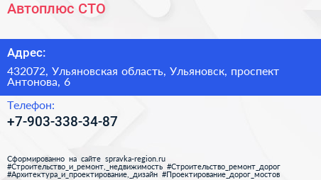 Автоплюс, СТО по адресу 432072, Ульяновская область, Ульяновск, проспект Антонова, 6 в дальнейшем Организация, размещена в следующих категориях: