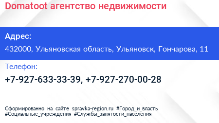 Domatoot, агентство недвижимости по адресу 432000, Ульяновская область, Ульяновск, Гончарова, 11 в дальнейшем Организация, размещена в следующих категориях: