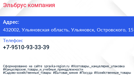 Эльбрус, компания по адресу 432002, Ульяновская область, Ульяновск, Островского, 15 в дальнейшем Организация, размещена в следующих категориях: