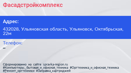 Фасадстройкомплекс по адресу 432028, Ульяновская область, Ульяновск, Октябрьская, 22м в дальнейшем Организация, размещена в следующих категориях: