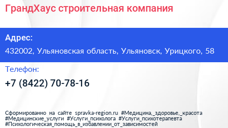 ГрандХаус, строительная компания по адресу 432002, Ульяновская область, Ульяновск, Урицкого, 58 в дальнейшем Организация, размещена в следующих категориях: