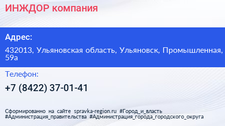 ИНЖДОР, компания по адресу 432013, Ульяновская область, Ульяновск, Промышленная, 59а в дальнейшем Организация, размещена в следующих категориях: