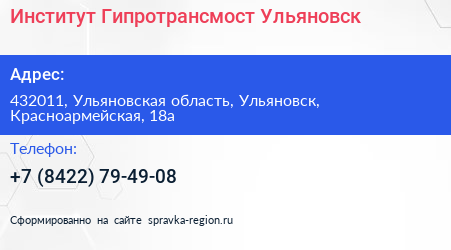 Институт Гипротрансмост-Ульяновск по адресу 432011, Ульяновская область, Ульяновск, Красноармейская, 18а в дальнейшем Организация, размещена в следующих категориях: