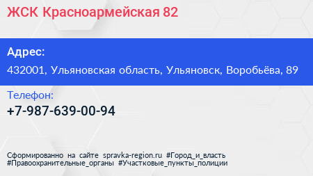 ЖСК Красноармейская 82 по адресу 432001, Ульяновская область, Ульяновск, Воробьёва, 89 в дальнейшем Организация, размещена в следующих категориях: