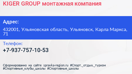 KIGER GROUP, монтажная компания по адресу 432001, Ульяновская область, Ульяновск, Карла Маркса, 71 в дальнейшем Организация, размещена в следующих категориях: