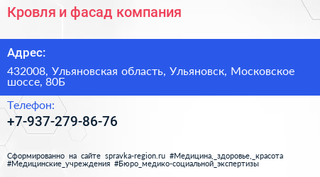 Кровля и фасад, компания по адресу 432008, Ульяновская область, Ульяновск, Московское шоссе, 80Б в дальнейшем Организация, размещена в следующих категориях: