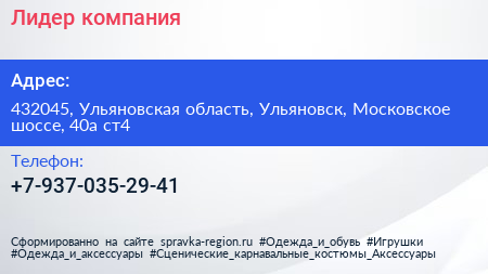 Лидер, компания по адресу 432045, Ульяновская область, Ульяновск, Московское шоссе, 40а ст4 в дальнейшем Организация, размещена в следующих категориях: