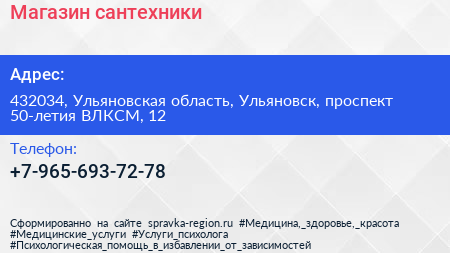 Магазин сантехники по адресу 432034, Ульяновская область, Ульяновск, проспект 50-летия ВЛКСМ, 12 в дальнейшем Организация, размещена в следующих категориях: