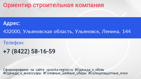 Ориентир, строительная компания по адресу 432000, Ульяновская область, Ульяновск, Ленина, 144 в дальнейшем Организация, размещена в следующих категориях:
