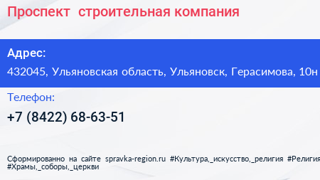 Проспект+, строительная компания по адресу 432045, Ульяновская область, Ульяновск, Герасимова, 10н в дальнейшем Организация, размещена в следующих категориях: