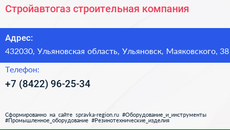 Стройавтогаз, строительная компания по адресу 432030, Ульяновская область, Ульяновск, Маяковского, 38 в дальнейшем Организация, размещена в следующих категориях: