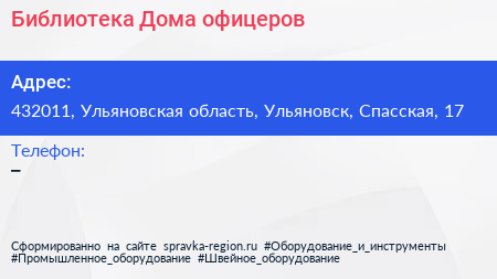 Библиотека Дома офицеров по адресу 432011, Ульяновская область, Ульяновск, Спасская, 17 в дальнейшем Организация, размещена в следующих категориях: