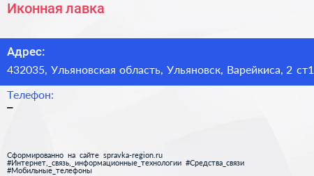Иконная лавка по адресу 432035, Ульяновская область, Ульяновск, Варейкиса, 2 ст1 в дальнейшем Организация, размещена в следующих категориях: