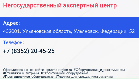 Негосударственный экспертный центр по адресу 432001, Ульяновская область, Ульяновск, Федерации, 52 в дальнейшем Организация, размещена в следующих категориях: