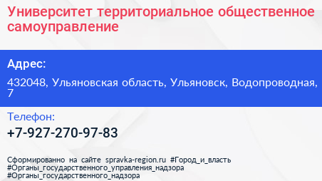 Университет, территориальное общественное самоуправление по адресу 432048, Ульяновская область, Ульяновск, Водопроводная, 7 в дальнейшем Организация, размещена в следующих категориях: