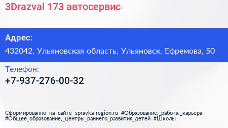 3Drazval 173, автосервис по адресу 432042, Ульяновская область, Ульяновск, Ефремова, 50 в дальнейшем Организация, размещена в следующих категориях: