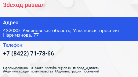 3dсход развал по адресу 432030, Ульяновская область, Ульяновск, проспект Нариманова, 77 в дальнейшем Организация, размещена в следующих категориях: