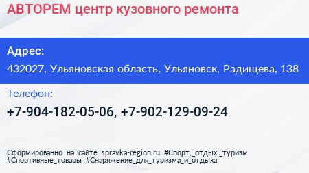 АВТОРЕМ, центр кузовного ремонта по адресу 432027, Ульяновская область, Ульяновск, Радищева, 138 в дальнейшем Организация, размещена в следующих категориях: