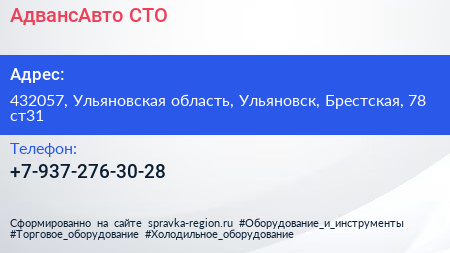 АдвансАвто, СТО по адресу 432057, Ульяновская область, Ульяновск, Брестская, 78 ст31 в дальнейшем Организация, размещена в следующих категориях: