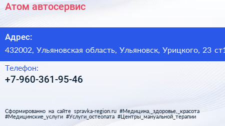 Атом, автосервис по адресу 432002, Ульяновская область, Ульяновск, Урицкого, 23 ст1 в дальнейшем Организация, размещена в следующих категориях: