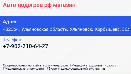 Авто-подогрев.рф, магазин по адресу 432064, Ульяновская область, Ульяновск, Карбышева, 36а в дальнейшем Организация, размещена в следующих категориях: