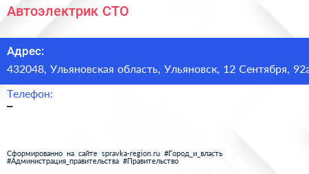 Автоэлектрик, СТО по адресу 432048, Ульяновская область, Ульяновск, 12 Сентября, 92а в дальнейшем Организация, размещена в следующих категориях: