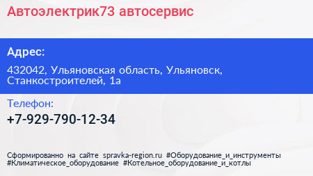 Автоэлектрик73, автосервис по адресу 432042, Ульяновская область, Ульяновск, Станкостроителей, 1а в дальнейшем Организация, размещена в следующих категориях:
