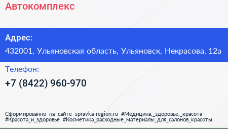 Автокомплекс по адресу 432001, Ульяновская область, Ульяновск, Некрасова, 12а в дальнейшем Организация, размещена в следующих категориях: