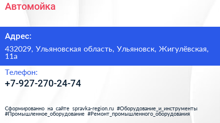 Автомойка по адресу 432029, Ульяновская область, Ульяновск, Жигулёвская, 11а в дальнейшем Организация, размещена в следующих категориях: