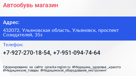 Автообувь, магазин по адресу 432072, Ульяновская область, Ульяновск, проспект Созидателей, 35з в дальнейшем Организация, размещена в следующих категориях:
