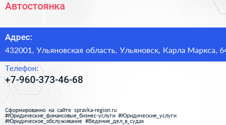 Автостоянка по адресу 432001, Ульяновская область, Ульяновск, Карла Маркса, 64 в дальнейшем Организация, размещена в следующих категориях:
