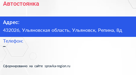 Автостоянка по адресу 432026, Ульяновская область, Ульяновск, Репина, 8д в дальнейшем Организация, размещена в следующих категориях: