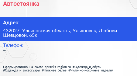 Автостоянка по адресу 432027, Ульяновская область, Ульяновск, Любови Шевцовой, 65к в дальнейшем Организация, размещена в следующих категориях:
