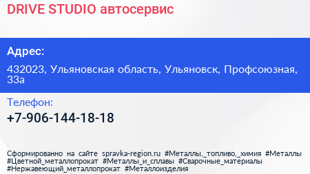DRIVE STUDIO, автосервис по адресу 432023, Ульяновская область, Ульяновск, Профсоюзная, 33а в дальнейшем Организация, размещена в следующих категориях: