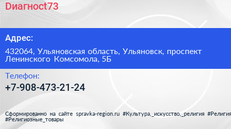 Dиагносt73 по адресу 432064, Ульяновская область, Ульяновск, проспект Ленинского Комсомола, 5Б в дальнейшем Организация, размещена в следующих категориях: