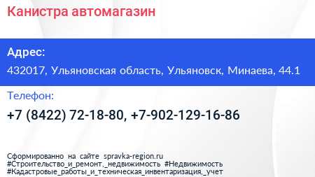 Канистра, автомагазин по адресу 432017, Ульяновская область, Ульяновск, Минаева, 44.1 в дальнейшем Организация, размещена в следующих категориях: