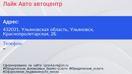 Лайк-Авто, автоцентр по адресу 432031, Ульяновская область, Ульяновск, Краснопролетарская, 2Б в дальнейшем Организация, размещена в следующих категориях: