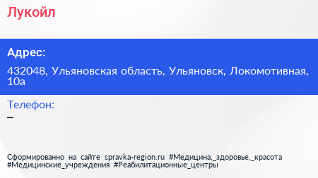 Лукойл по адресу 432048, Ульяновская область, Ульяновск, Локомотивная, 10а в дальнейшем Организация, размещена в следующих категориях: