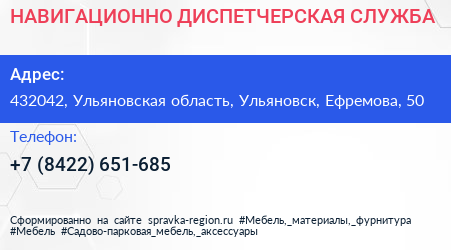 НАВИГАЦИОННО-ДИСПЕТЧЕРСКАЯ СЛУЖБА по адресу 432042, Ульяновская область, Ульяновск, Ефремова, 50 в дальнейшем Организация, размещена в следующих категориях: