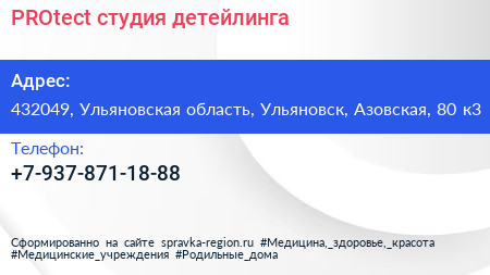 PROtect, студия детейлинга по адресу 432049, Ульяновская область, Ульяновск, Азовская, 80 к3 в дальнейшем Организация, размещена в следующих категориях: